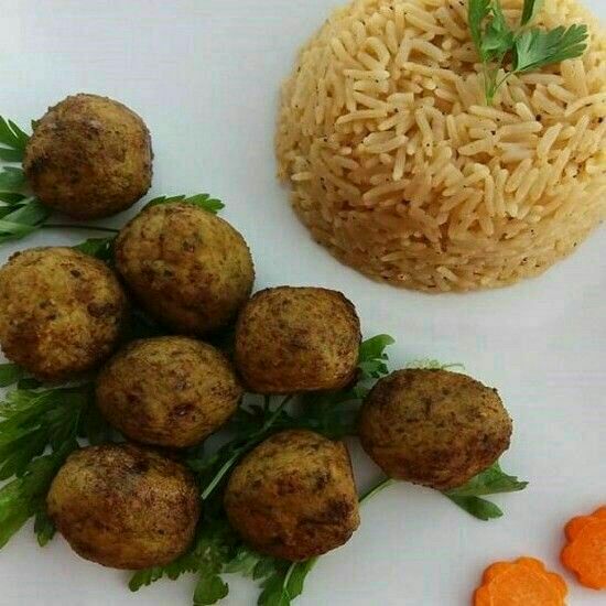 شكلي كرات صغيرة من المزيج ثم اقليها في مقلاة بالقليل من الزيت حتى ينضج ويتحمر وقدميه ساخناً إلى جانب الأرز المحضر مسبقاً.